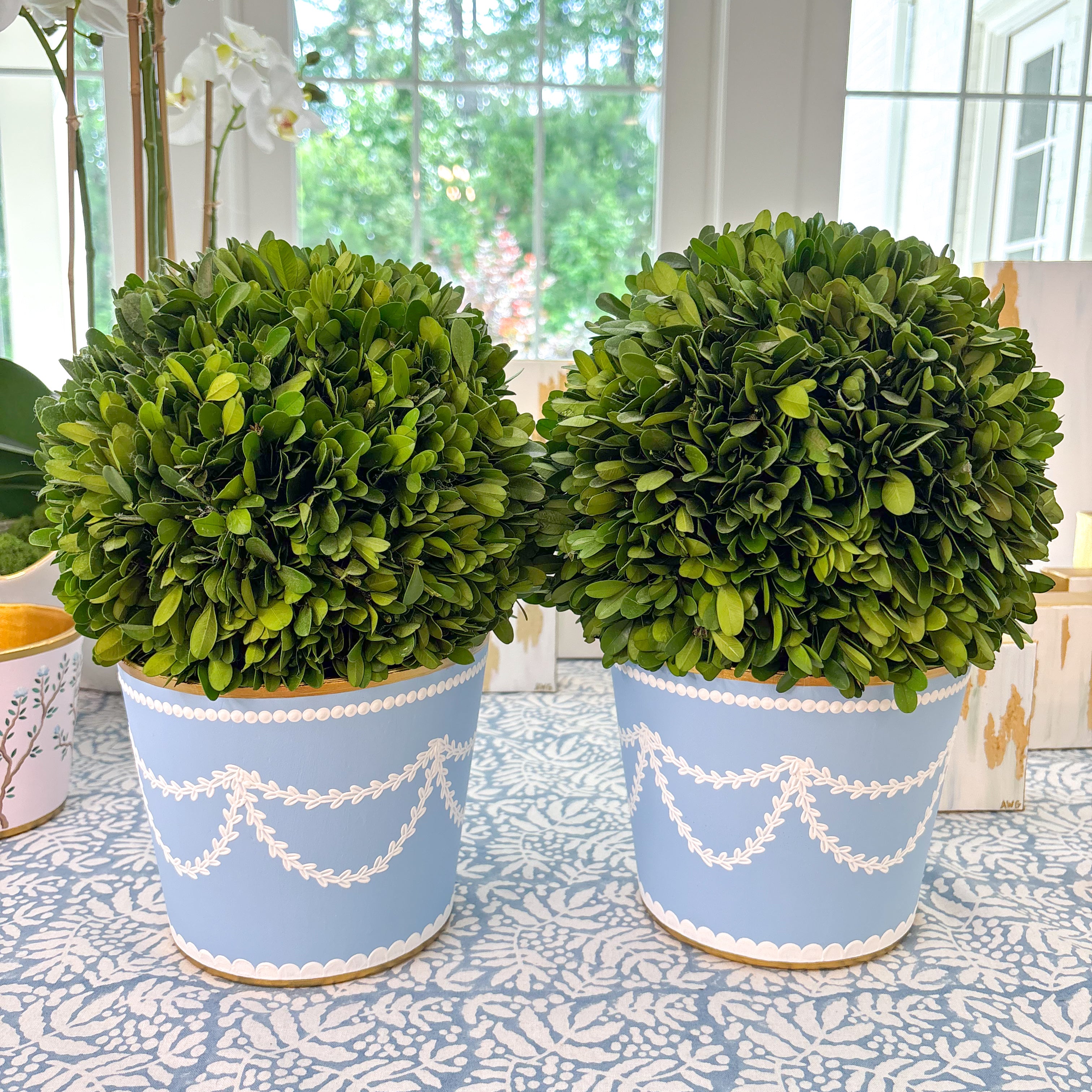 Blue + White 5.5" Draped Garland Cachepot