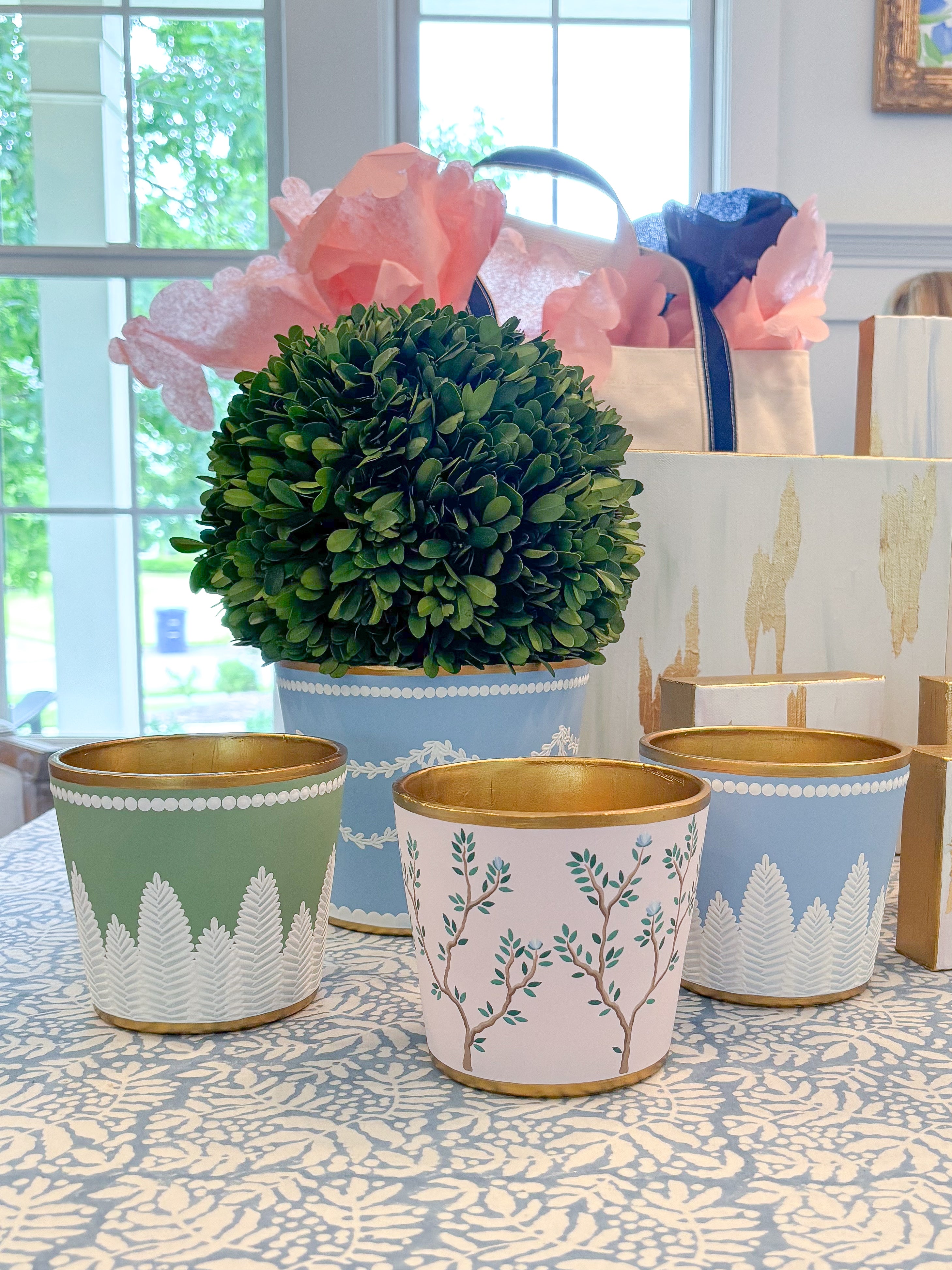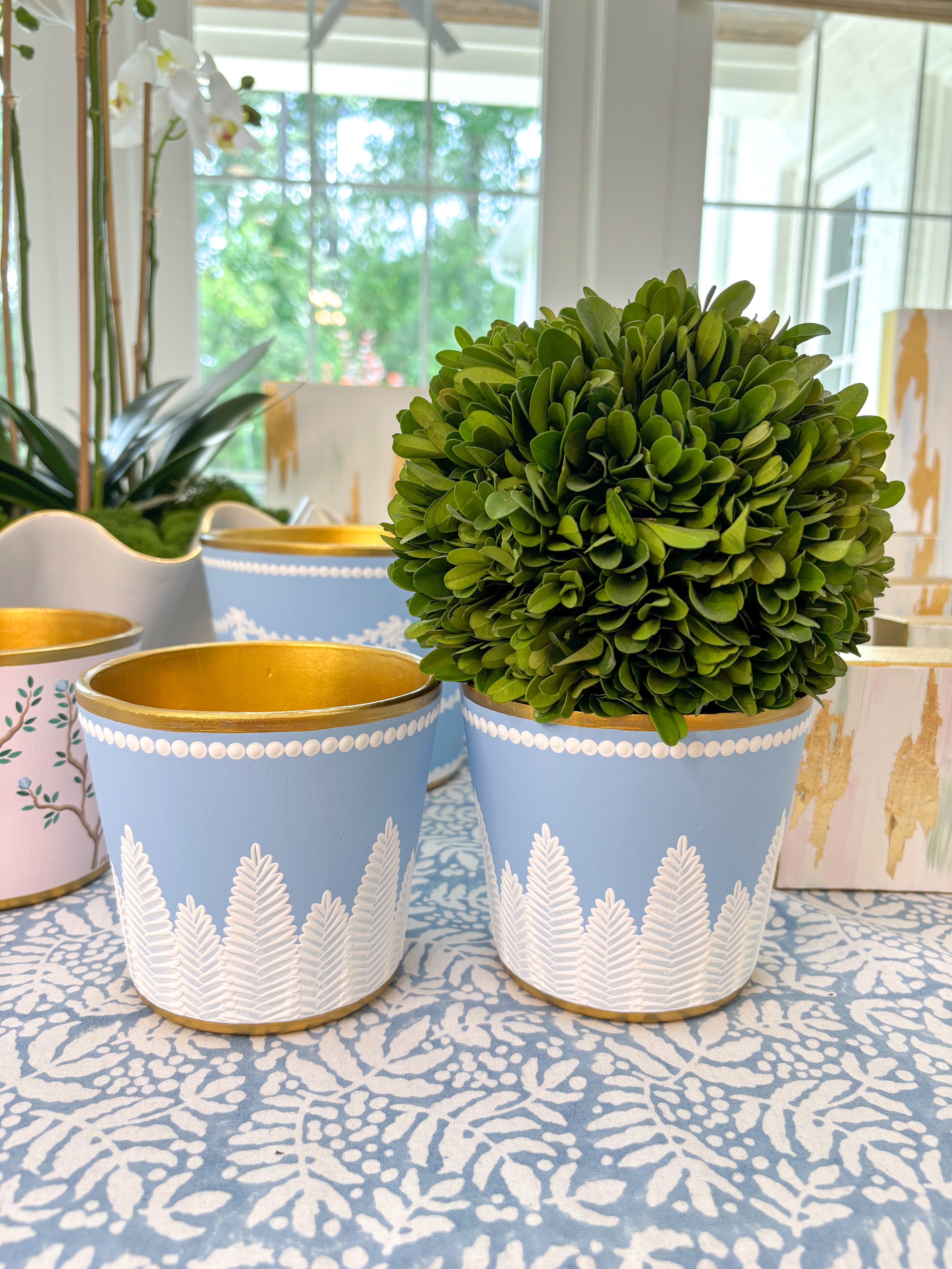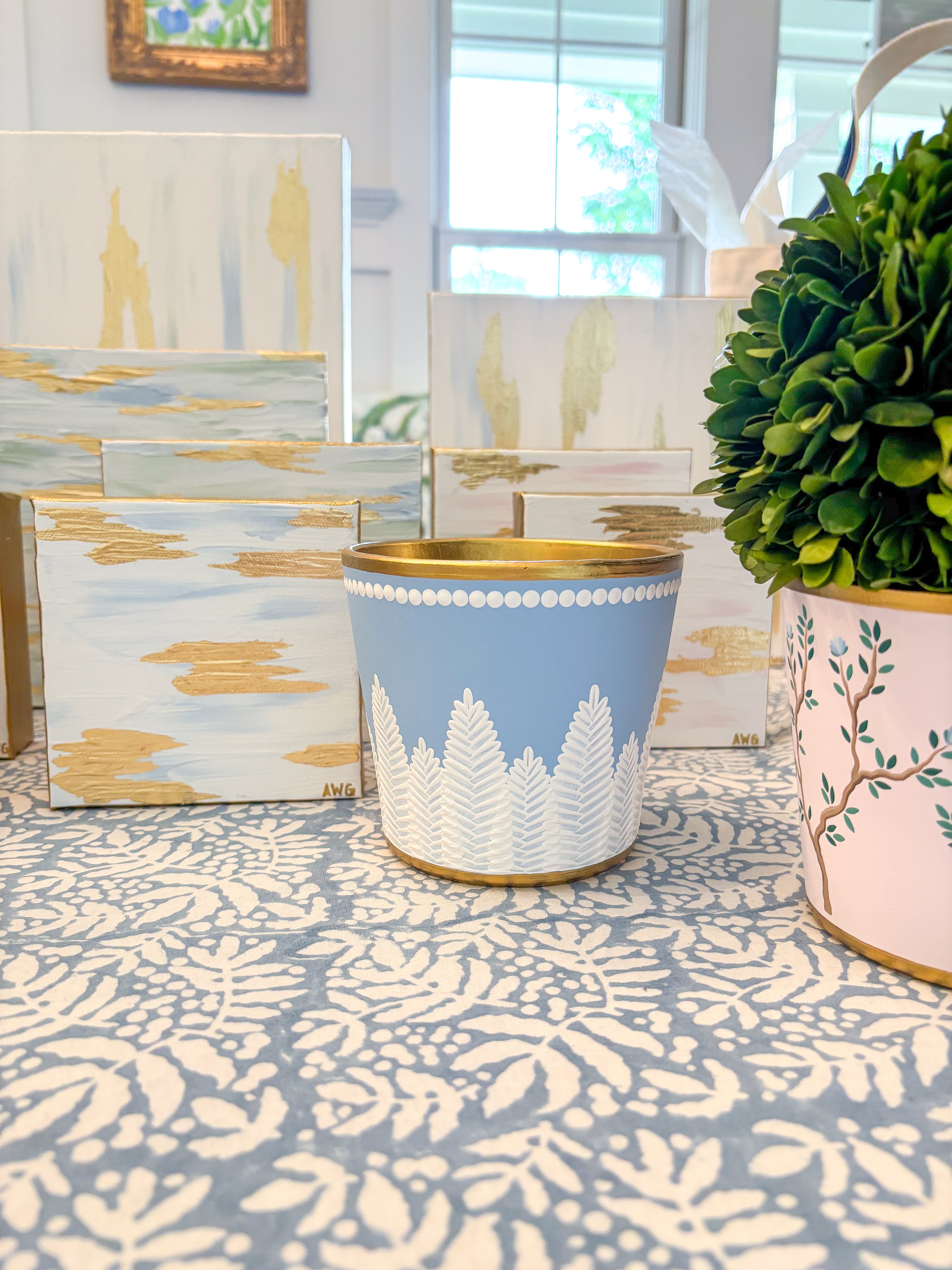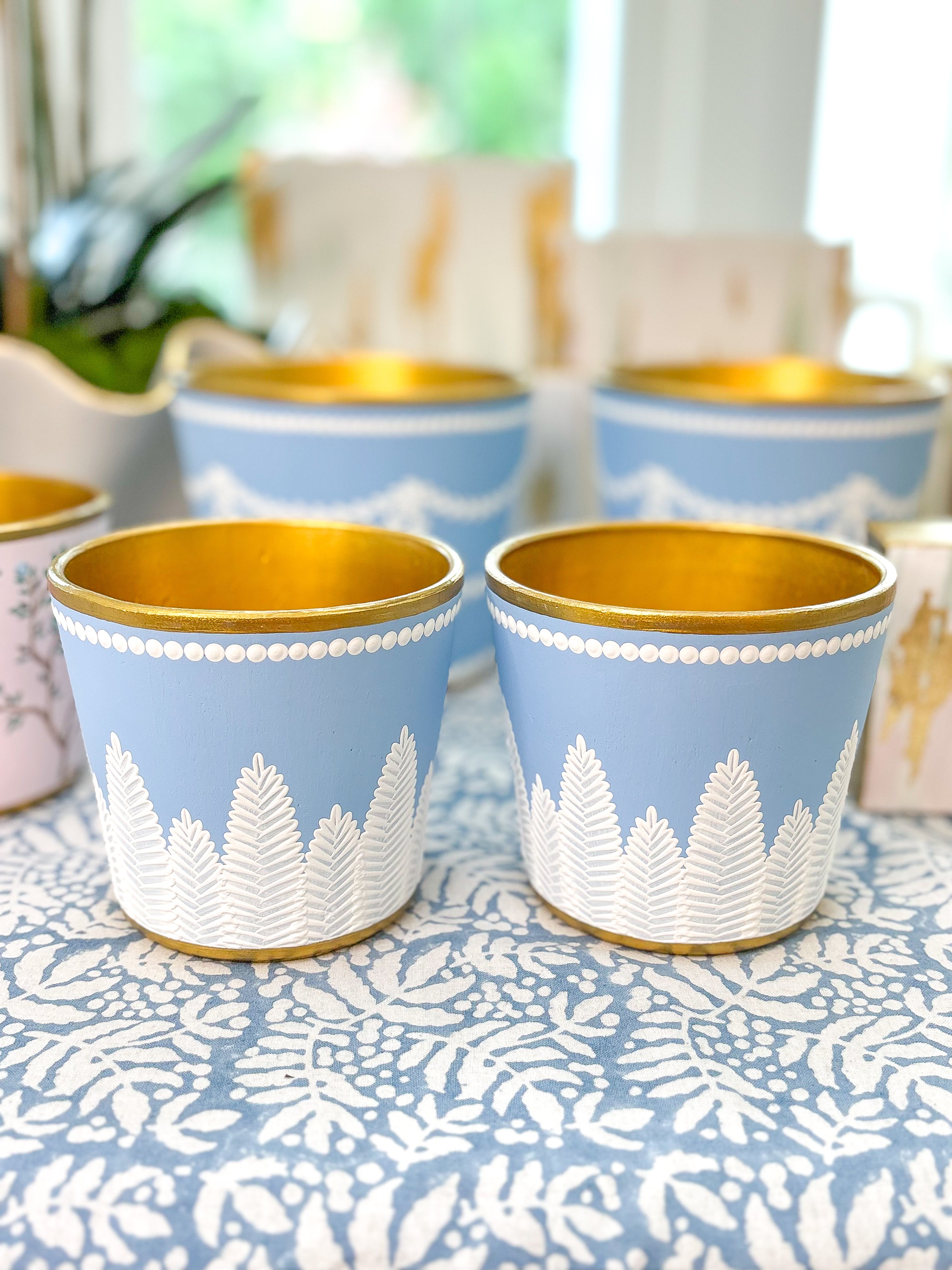 Our heirloom quality cachepots are lovingly created in North Carolina. Each piece is an individual work of art that has been carefully hand painted using a signature layering technique that gives rich texture and depth to every detail.