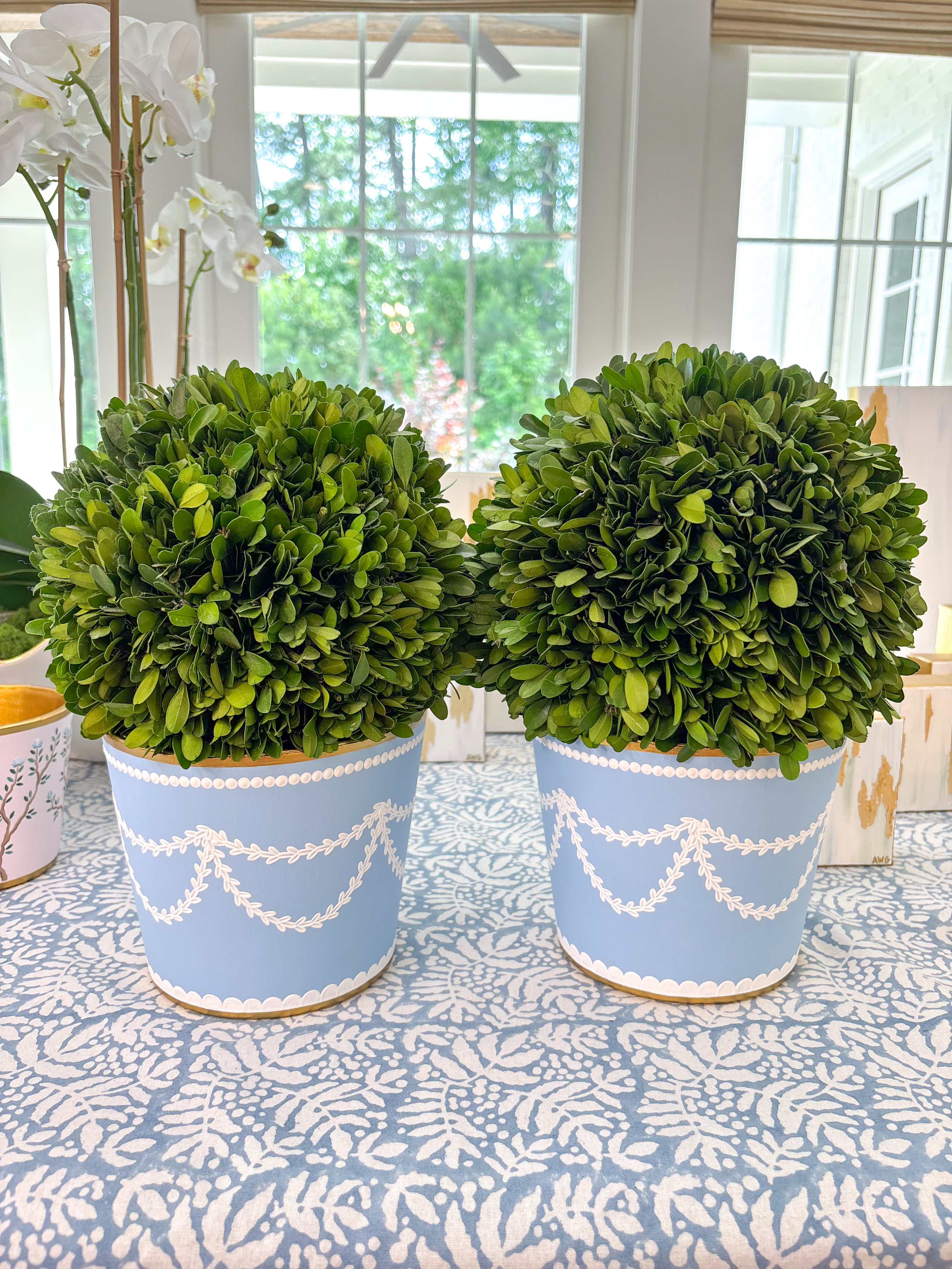 Our heirloom quality cachepots are lovingly created in North Carolina. Each piece is an individual work of art that has been carefully hand painted using a signature layering technique that gives rich texture and depth to every detail.