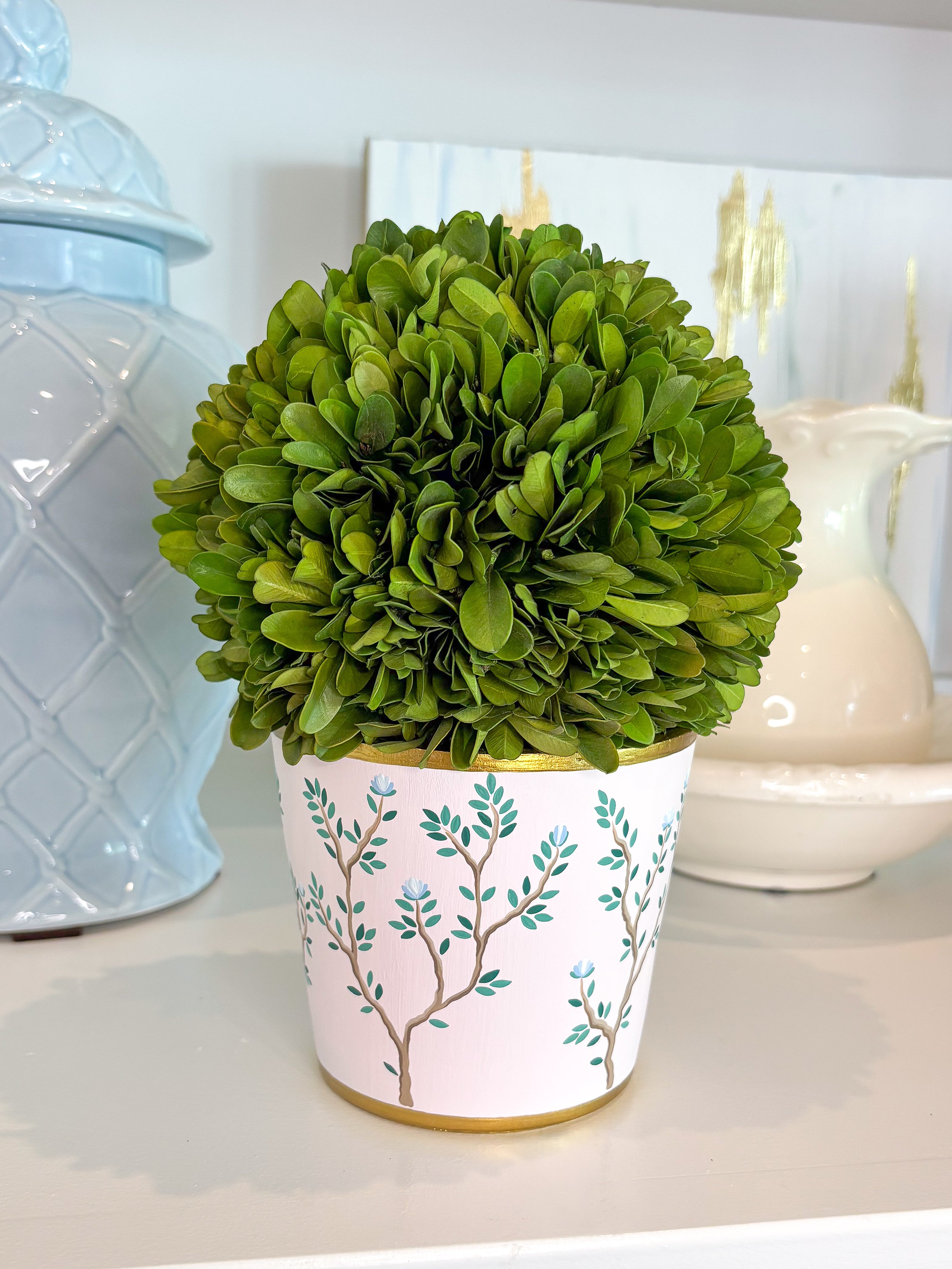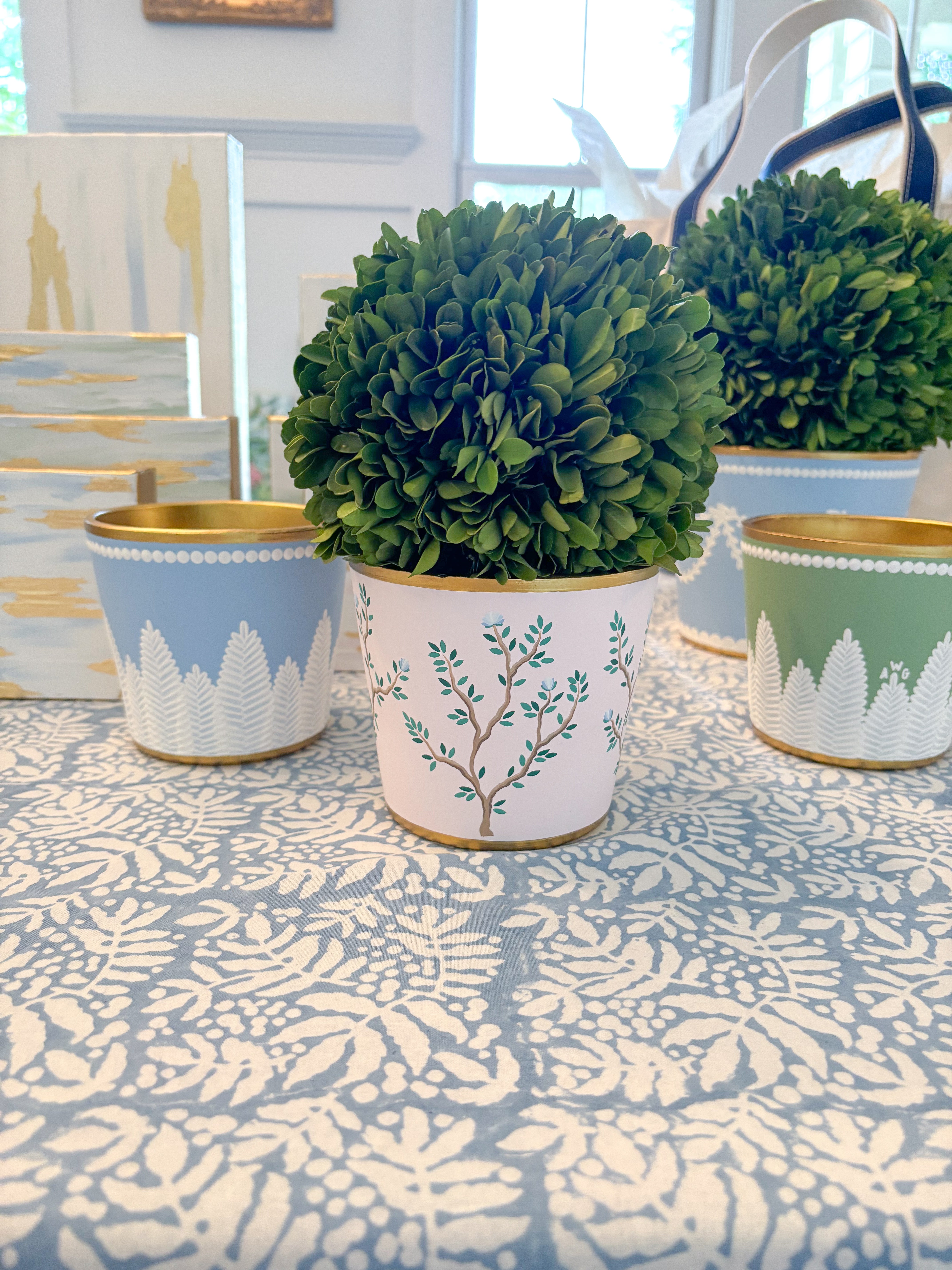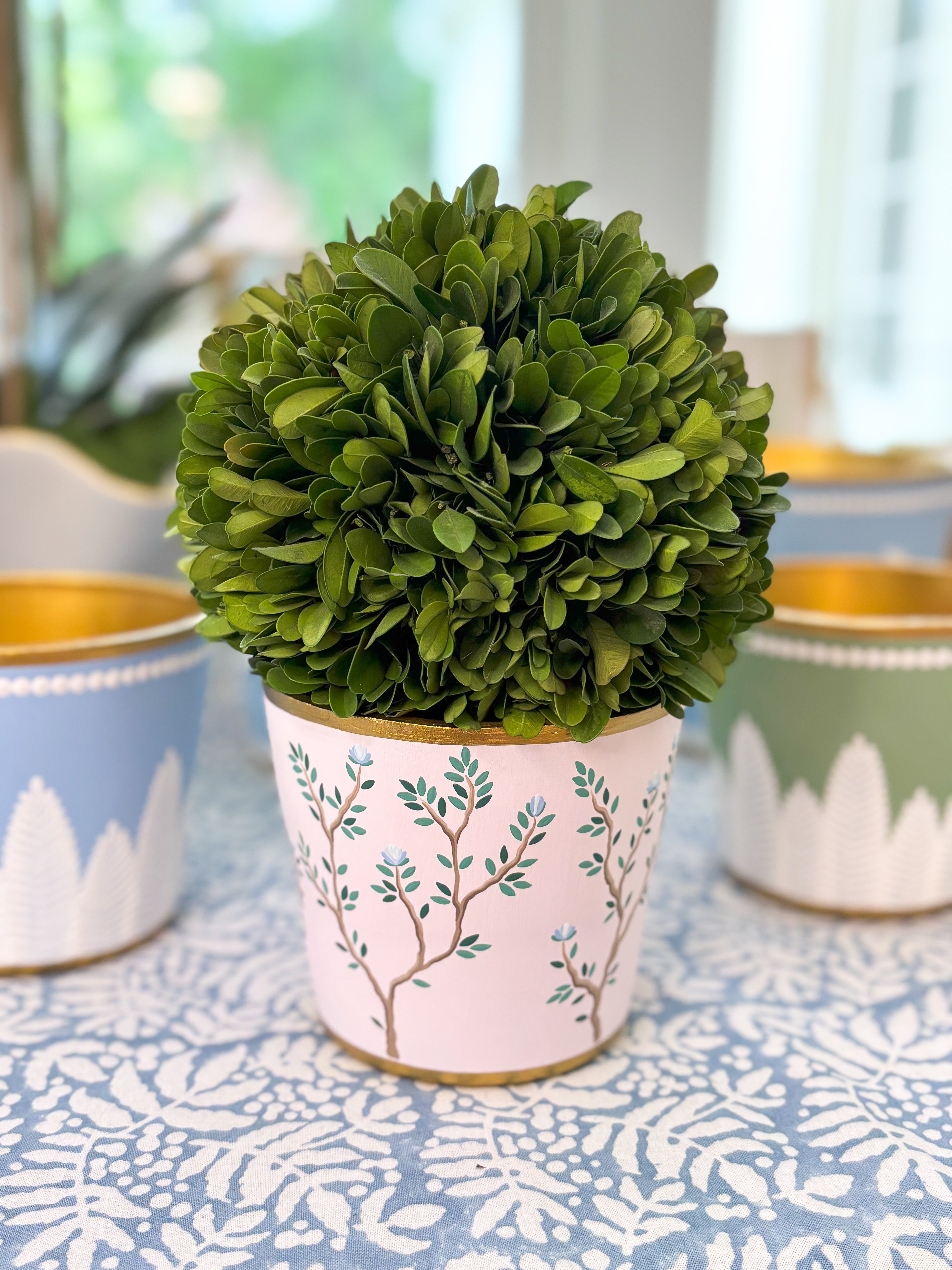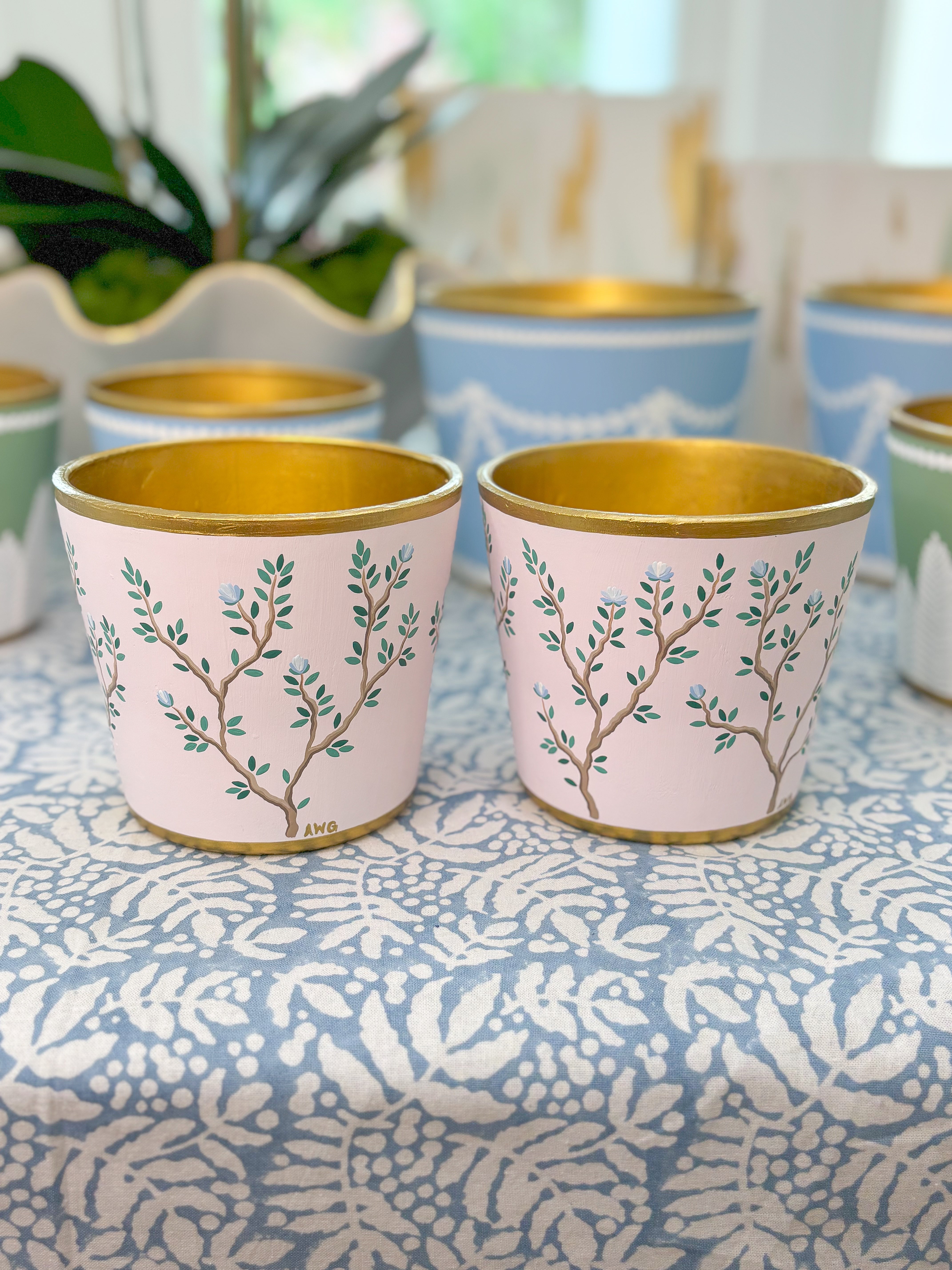Our heirloom quality cachepots are lovingly created in North Carolina. Each piece is an individual work of art that has been carefully hand painted to showcase a delicate floral chinoiserie motif.